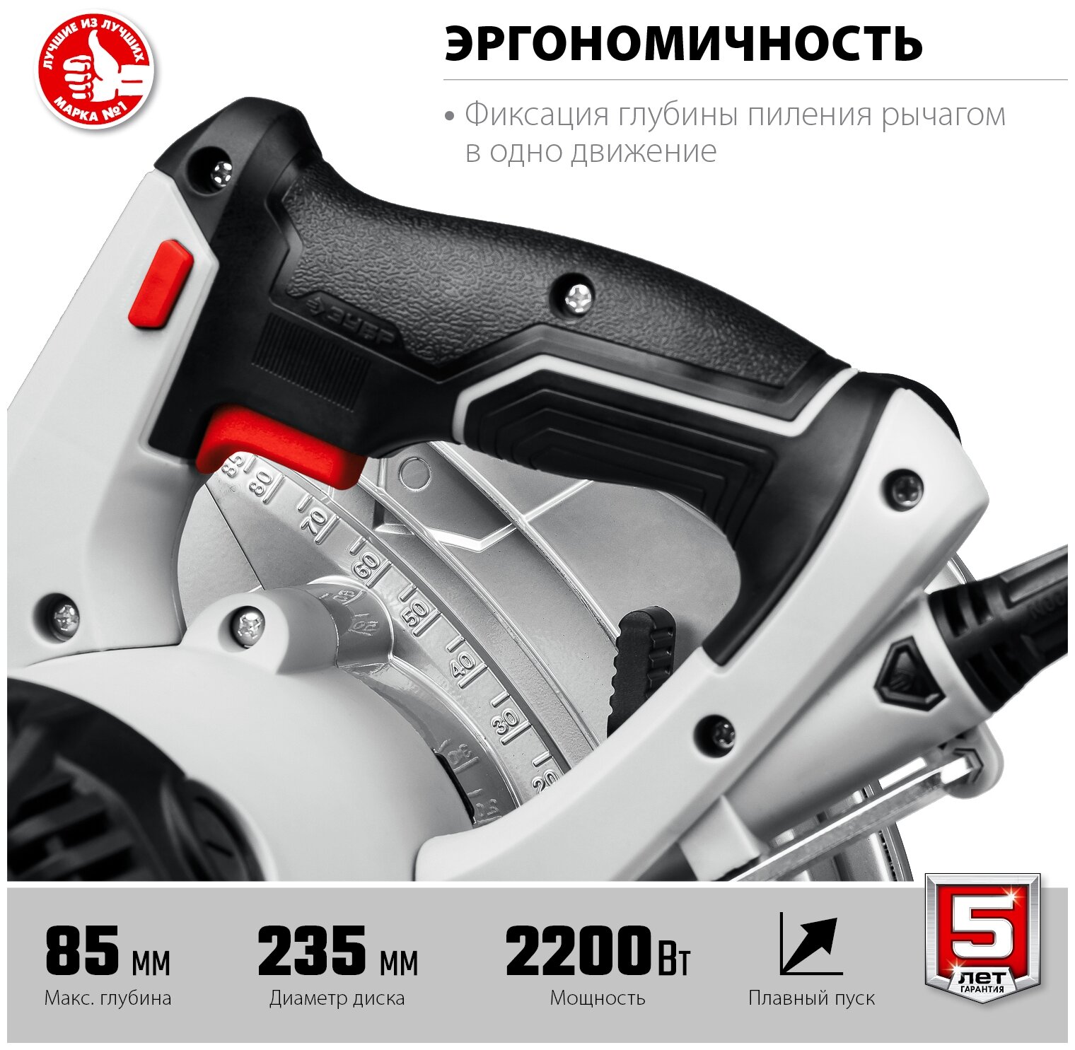 ЗУБР 2200 Вт, диск 235 мм, пила дисковая ПД-85 Мастер