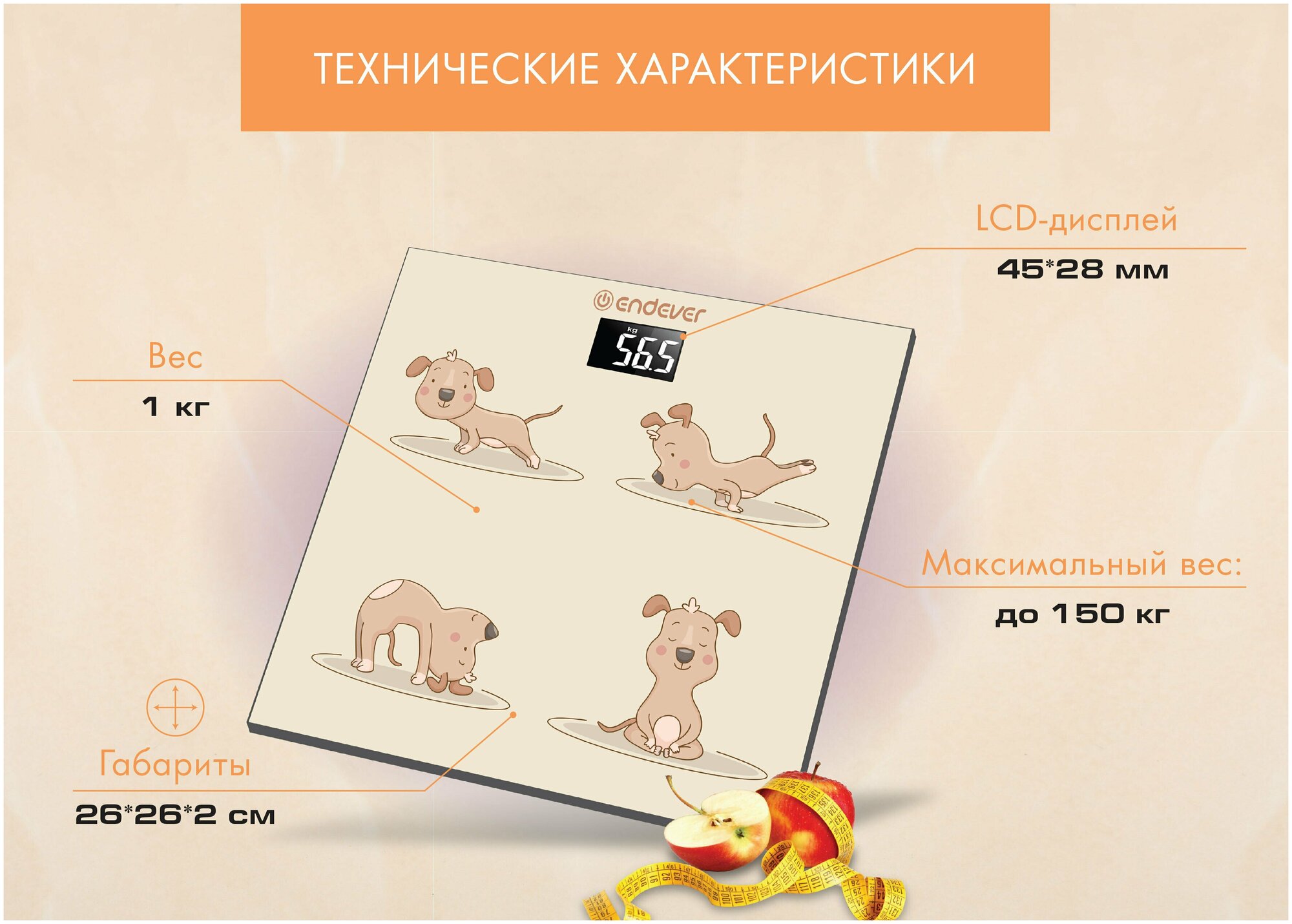 Весы напольные Endever Aurora-564 рисунок Щенок