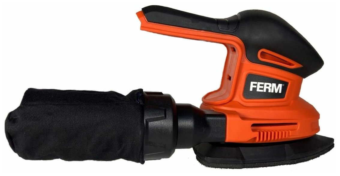 Шлифмашина Ferm Акк. орбитальная Li-Ion 20 В Компл. Solo (без акк. и ЗУ), 10000 об.мин., адаптер пылесоса, мешок для пыли, 6 шт. шлиф.бумаги (P60, P80, P120)