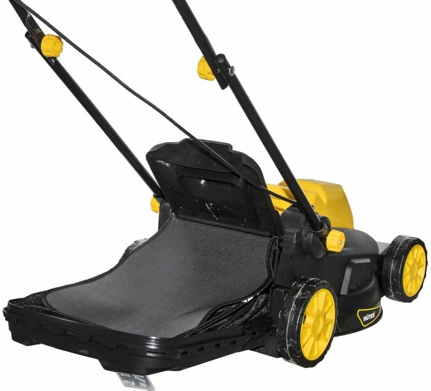 Лучшие цены. Электрическая газонокосилка Huter ELM-380T поможет в уходе за газоном на небольшом ровном участке. С ее помощью можно быстро и аккуратно подстричь траву на даче или перед загородным домом. В отличие от бензиновых моделей устройство, работающее от электричества, легче и маневренней. Такую электрогазонокосилку просто перемещать. А еще ее не нужно заправлять бензином, поэтому существенно сокращается время на обслуживание и подготовку к покосу. Магазины в вашем городе.