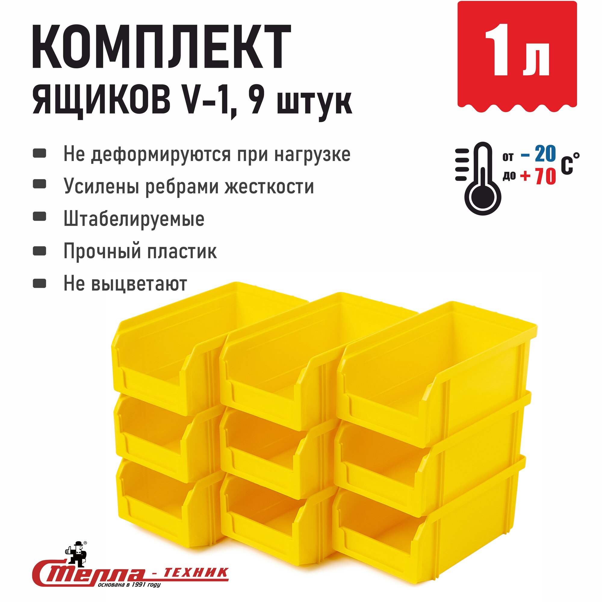 Ящики для инструмента Пластиковый ящик Стелла-техник V-1-К9-желтый , комплект 9 штук