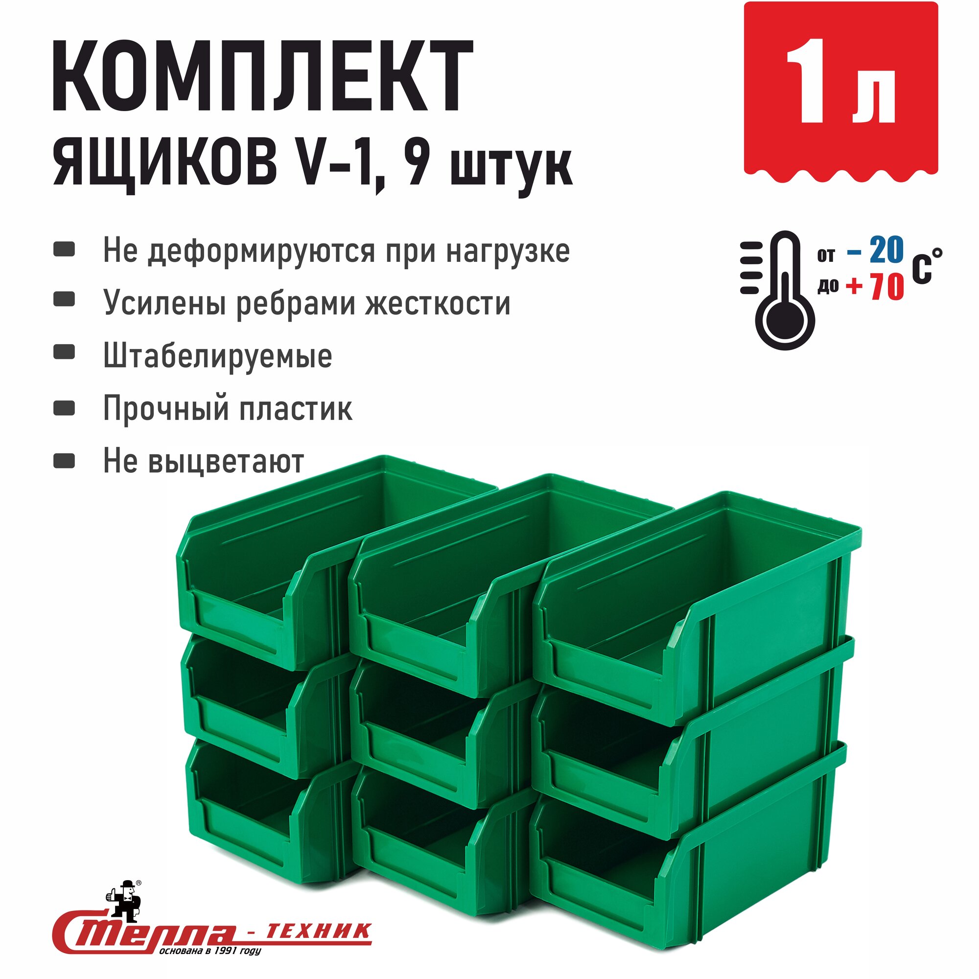 V-1-К9-красный Стелла-техник Пластиковый ящик , 180х310х140мм, комплект 9 штук, V-1-К9-красный .