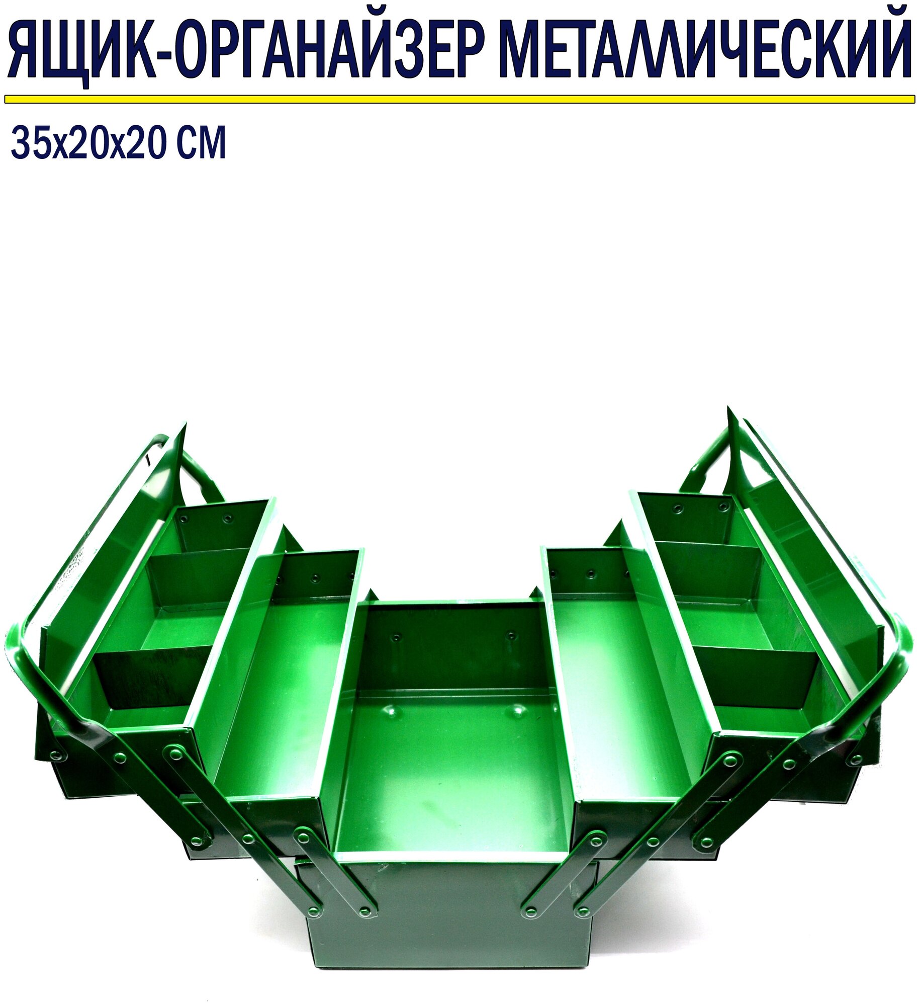 Лучшие цены. Ящик для инструментов раздвижной металлический изготавливается из металла, имеет защитную порошковую окраску. Надежное и прочное переносное хранилище для крепежа и инструментов. Имеет пять раздвигающихся отделений для хранения различного инструмента, элементов крепежа и расходных материалов. Ящик защищен от коррозии синтетической ударопрочной эмалью. Благодаря двум ручкам ящик удобно использовать для транспортировки и переноски. Цвет: зелёный, синий. Магазины в вашем городе.