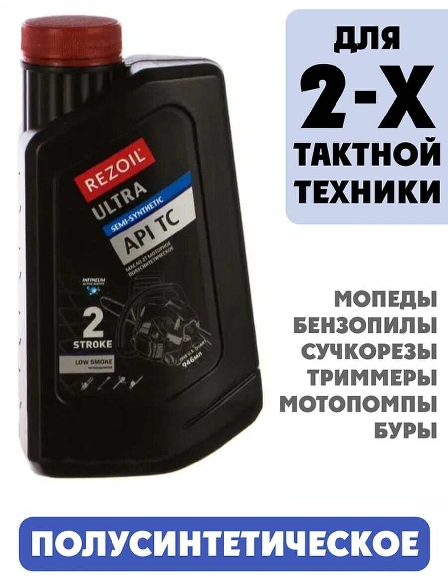 Лучшие цены. Полусинтетическое масло от производителя Rezoil предназначено для двухтактных двигателей с малым объемом (культиваторы, снегоуборочные машины, бензопилы, мотопомпы, снегоходы, газонокосилки, культиваторы, мотоциклы, скутеры и др.). Образует прочную масляную пленку, устойчивую к температурным и фрикционным нагрузкам. Прекрасно подходит как для предварительного смешивания с бензином, так и для систем с непосредственным впрыском. Магазины в вашем городе.