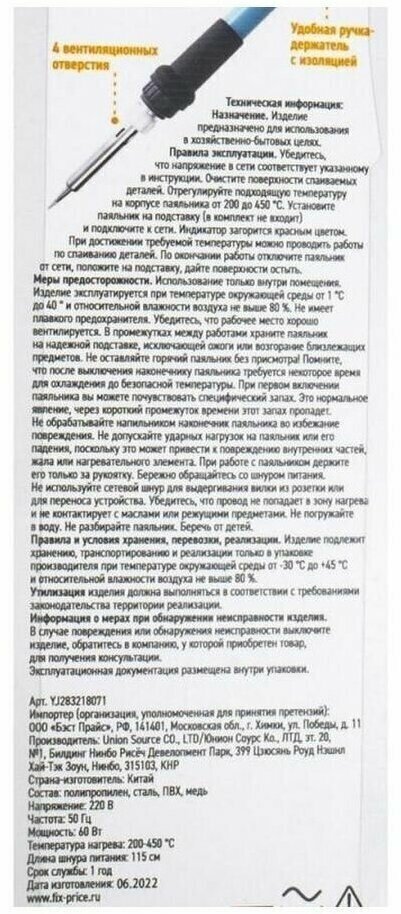 Лучшие цены. Паяльник Master Hand - это незаменимый инструмент для домашнего мастера, который поможет вам починить мелкие электроприборы и устройства. Благодаря удобной ручке с изоляцией, паяльник удобно держать в руке, а регулятор температуры позволит настроить оптимальную температуру для работы с различными материалами. В комплекте с паяльником идет шнур длиной 115 сантиметров, что позволяет работать на удалении от розетки. Магазины в вашем городе.