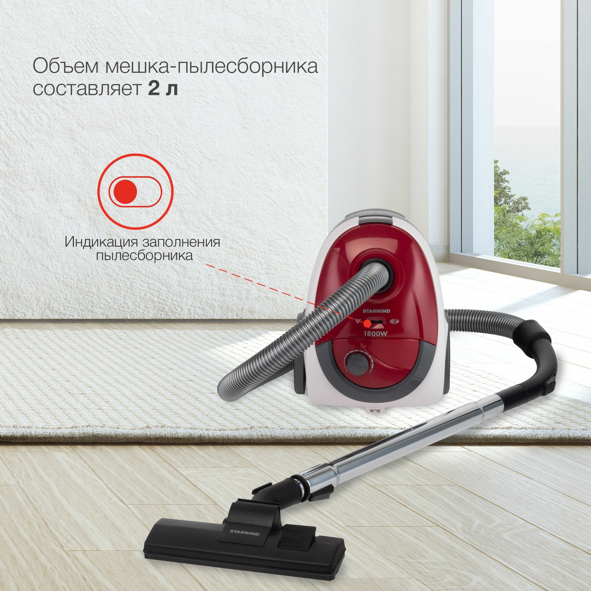 Пылесос StarWind SCB1114, 1800Вт, красный/белый