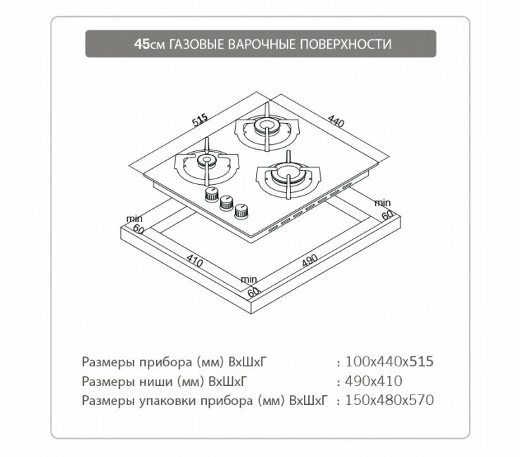 | Кол-во газовых конфорок | 3 |
