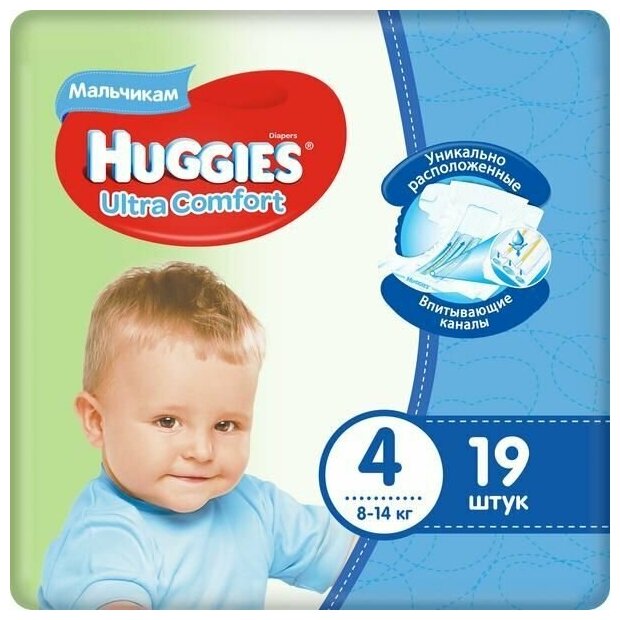 Подгузники Huggies Ultra Comfort для мальчиков 8-14 кг, размер 4, 19 шт