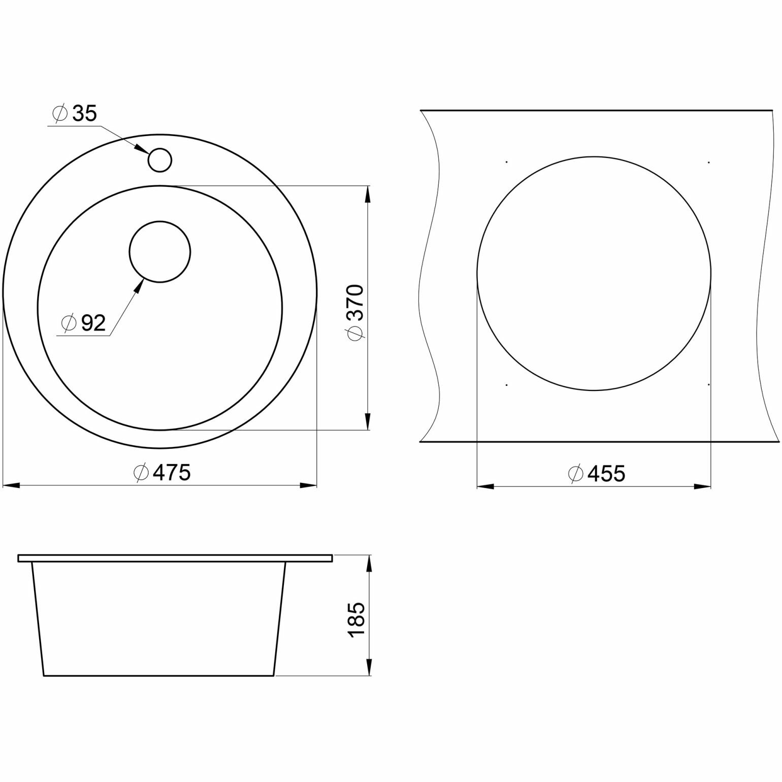 Кухонная мойка кварцевая Granula GR-4801 односекционная круглая, врезная, чаша D 370, цвет черный (4801bl) 7 150 ₽ Подробнее