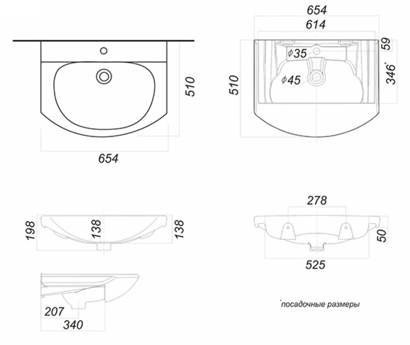 Умывальники SANITA Лагуна раковина для тумбы 650мм белая