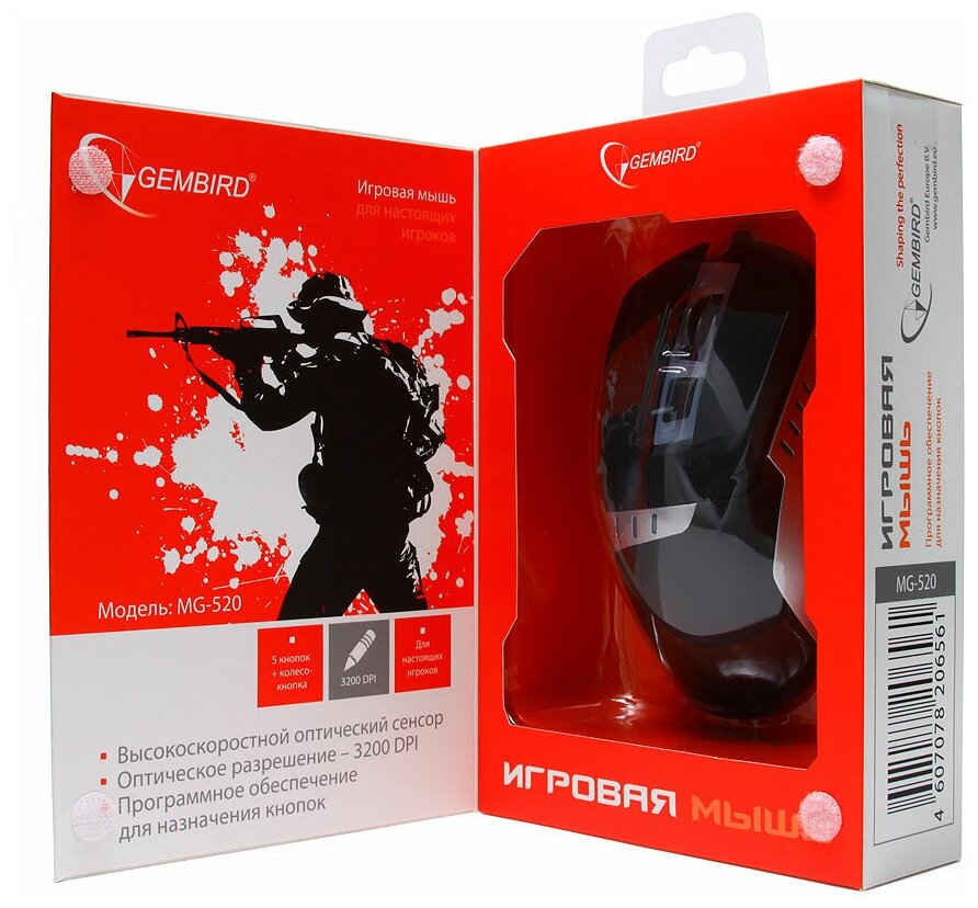 Лучшие цены. [Мышь] Gembird MG-520 USB {Мышь игровая, 5кнопок+колесо-кнопка, 3200DPI, 1000 Гц, подсветка, программное обеспечение для создания макросов} Gembird MG-520 USB {Мышь игровая, 5кнопок+колесо-кнопка, 3200DPI, 1000 Гц, подсветка, программное обеспечение для создания макросов} масса(кг) 0.194 GTD Number 10013160/180123/3021704 GTIN 04607078206561 Cтрана-производитель китай Партномер MG-520 Вес (грамм) 125 высота(см) 5 Габариты 123 х 69 х 41 мм гарантия 1 год длина(см). Магазины в вашем городе.