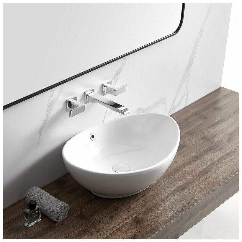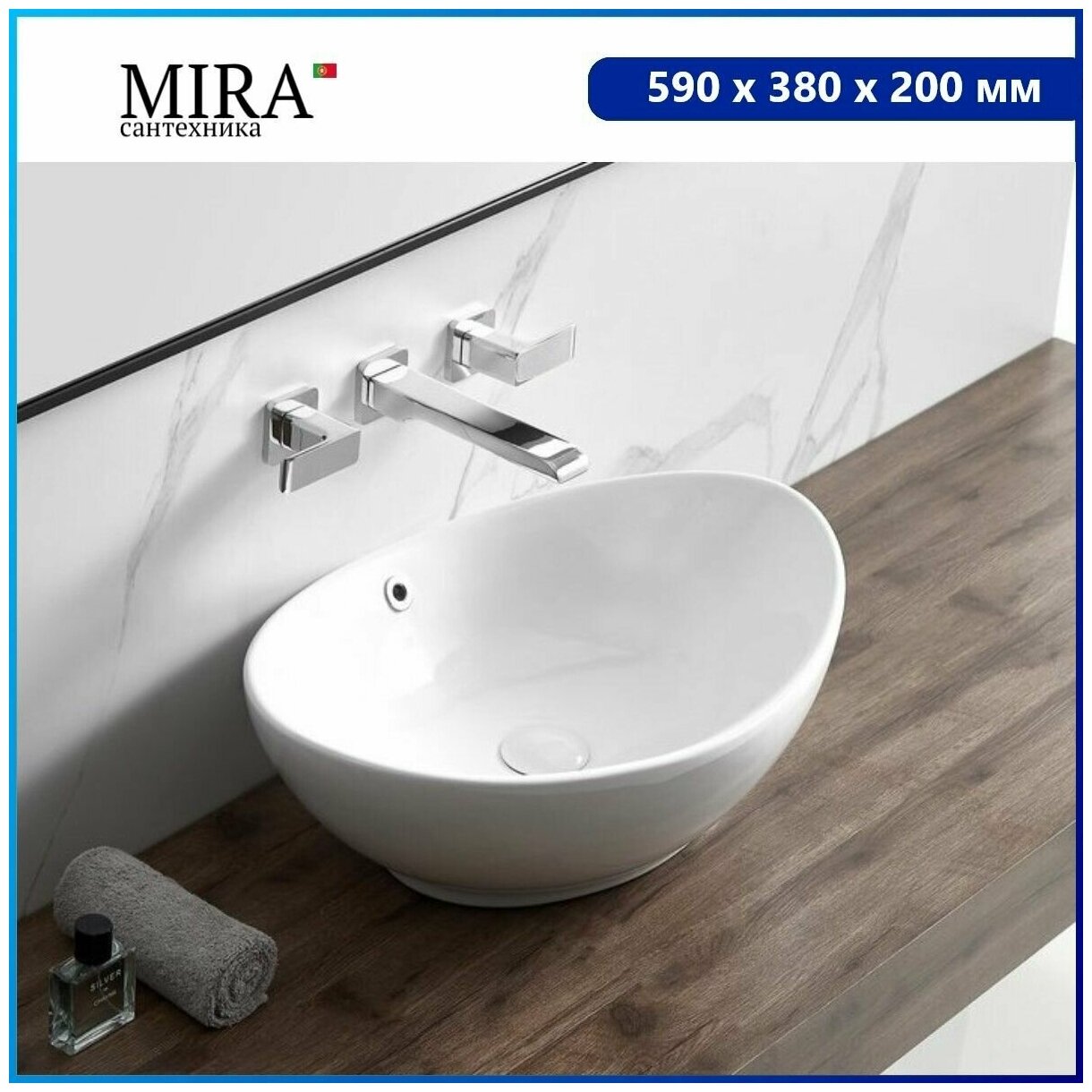 Умывальник Раковина для ванной, Mira MR-8150, накладная, овальная, в ванную, с антигрязевым покрытием, с переливным отверстием, без отверстия под смеситель