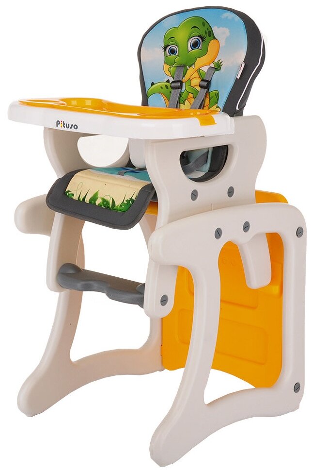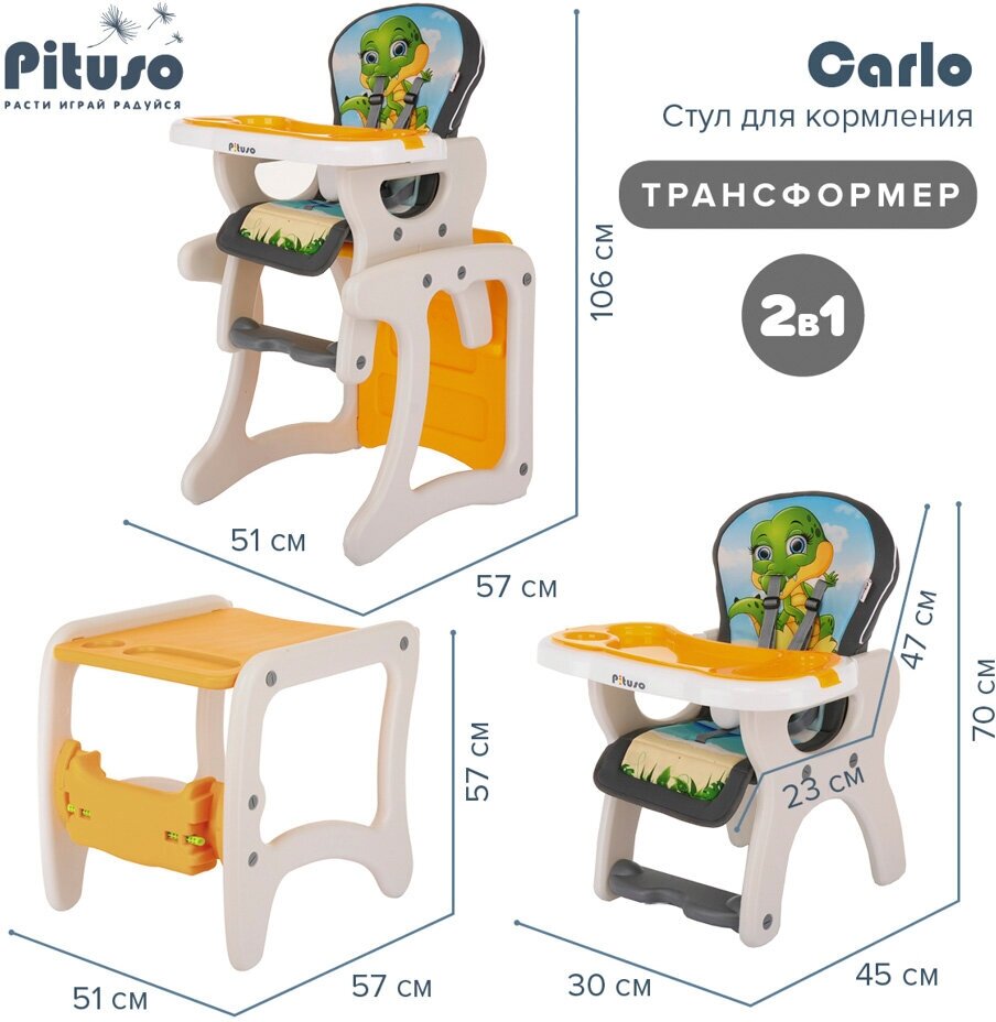 Лучшие цены. Pituso Стул-трансформер Carlo Дракоша представляет собой идеальную конструкцию 2 в 1. Изначально его можно использовать для кормления малыша, с регулируемой спинкой в 3-х положениях и столиком, регулируемым по глубине посадки, который имеет съемный подносик. А затем, когда малыш подрастет, и в качестве стула с партой. Многофункциональность такого стульчика-трансформера позволяет экономить свободное пространство в помещении. Пятиточечный ремень безопасности. Яркий дизайн. Магазины в вашем городе.