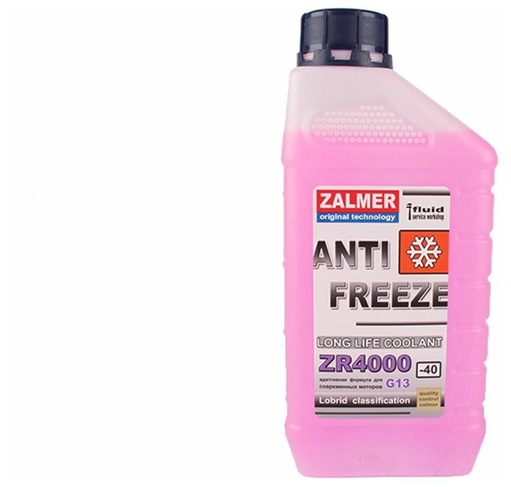 Лучшие цены. Антифриз ZALMER ZR4000 Применяется в качестве рабочей жидкости в системах охлаждения ДВС и прочих теплообменных аппаратах. Обеспечивает превосходную защиту от замерзания, коррозии и перегрева двигателей из алюминия или черных металлов легковых и грузовых автомобилей, автобусов и спецтехники. Разработан в соответствии с требованиями стандарта G13 (TL VW 774J). Совместим с охлаждающими жидкостями: G12, G12+, G12++ на основе этиленгликоля, пропиленгликоля. Температура замерзания до -40С. Магазины в вашем городе.