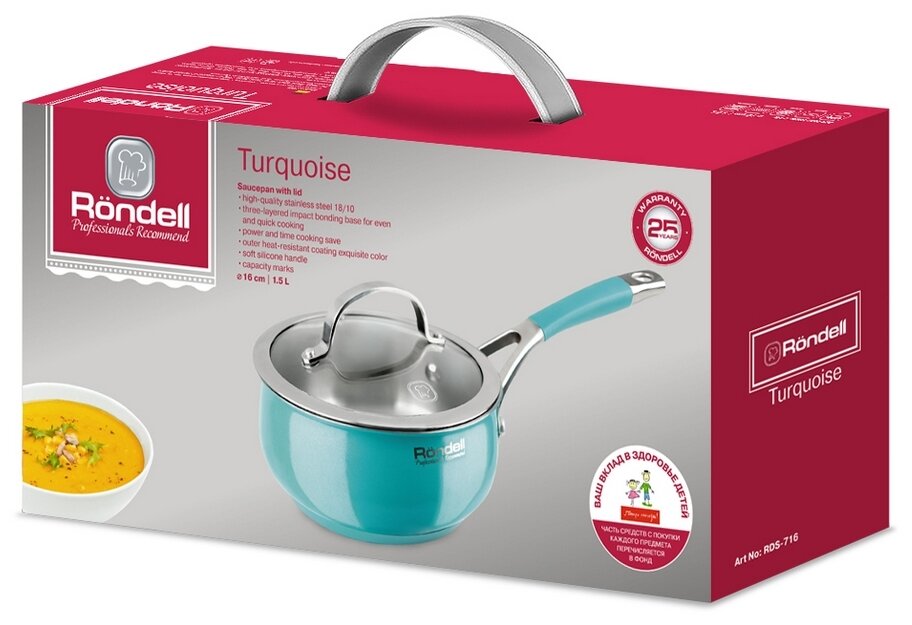 Кастрюли Ковш с/кр 16 см (1.5 л) Rondell Turquoise 716-RDS