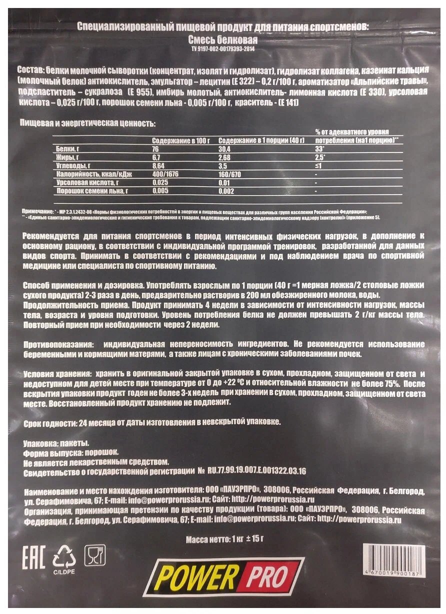 Power Pro Protein Power Mix 1000 гр (Power Pro) Альпийский рецепт