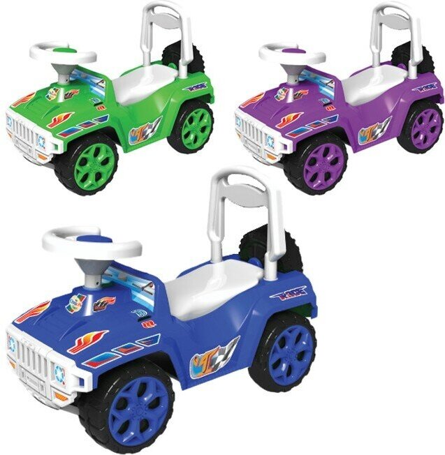 Лучшие цены. Стильный и яркий мини-джип понравится вашему ребёнку. Широкие колёса имитируют вид «взрослого» джипа, а руль оборудован настоящим клаксоном. Под сиденьем предусмотрено пространство для игрушек и вещей. Спереди и сзади установлены упоры безопасности, которые предотвращают переворачивание игрушки. Машинка выдерживает вес до 30 кг и предназначена для детей от 3 лет. Магазины в вашем городе.