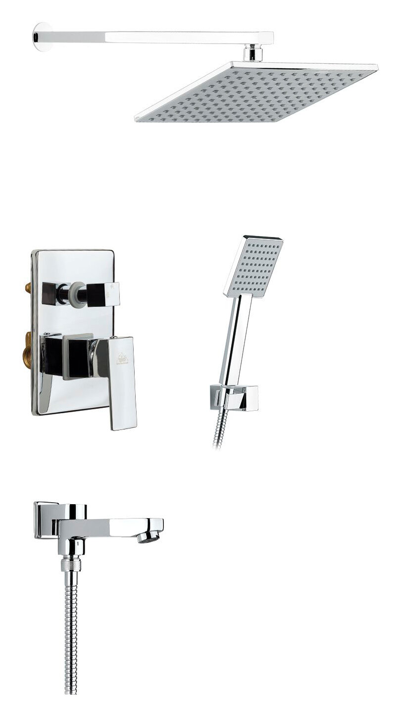 | Комплектация | ручной душ (АБС-пластик) / верхний душ(АБС-пластик) / смеситель / излив / душевой шланг / крепление ручного душа / настенный кронштейн |