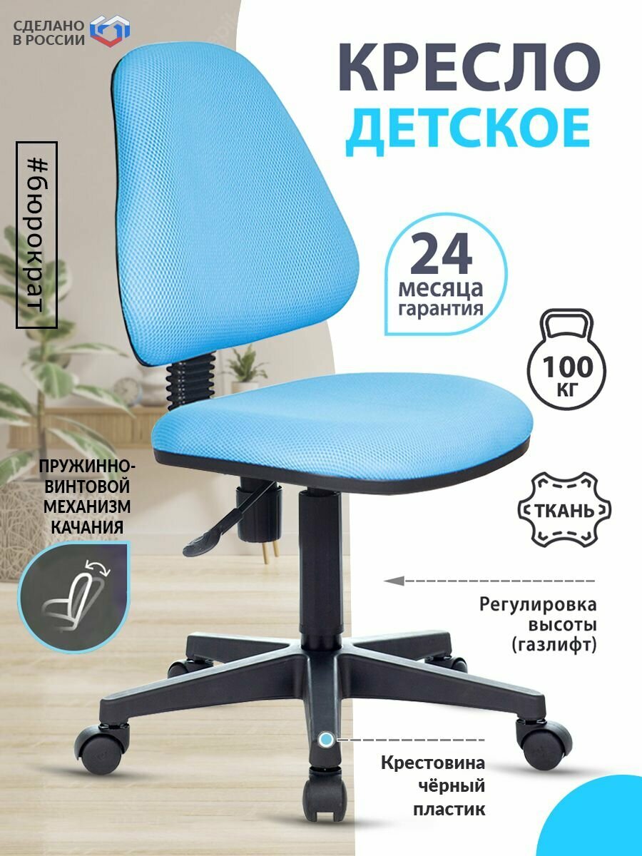 Кресло детское Бюрократ KD-4, на колесиках, ткань, голубой [kd-4/tw-55]