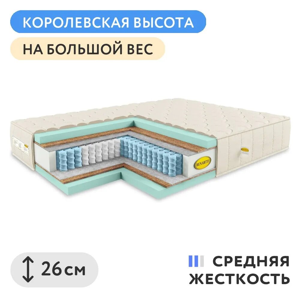 Матрас Benartti Classic Mega Hard S1000, 140x185 см (нестандартный), пружинный 30 791 ₽ Подробнее