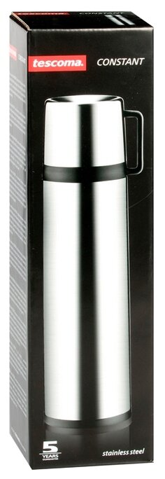 Лучшие цены. Термос с кружкой Объем: 750 мл Диаметр термоса по верхнему краю: 5,2 см. Диаметр дна: 7,8 см. Высота термоса с учетом крышки: 28,5 см. Термос Tescoma Constant предназначен для хранения теплых и холодных напитков на длительное время. Изделие изготовлено из пластика и высококачественной нержавеющей стали с двойной колбой. Пробка плотно закручивается, а благодаря вакуумной кнопке внутри создается абсолютная герметичность, что предотвращает проливание напитков. Магазины в вашем городе.