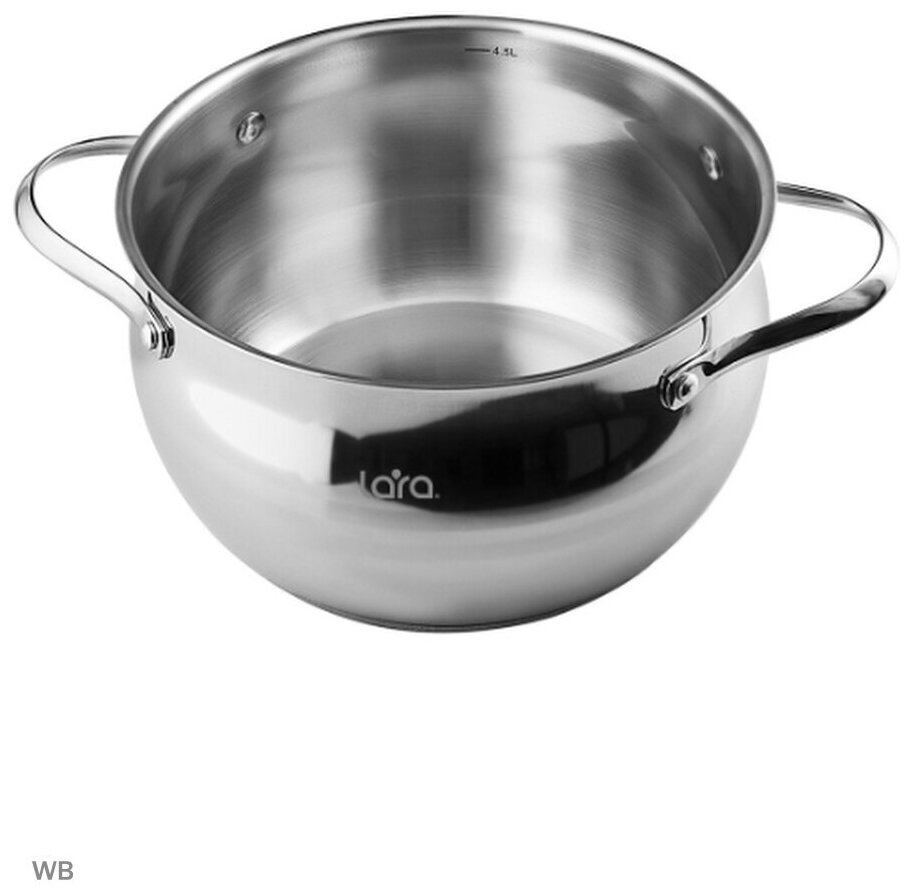 Lara Кастрюля нерж серия APPLE 26x14,5см,7.7л,стал.ручки,капсулир индукц дно,крышка стекло LR02-36