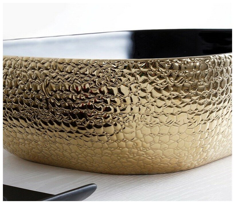 Лучшие цены. Раковина для ванной Gid D1302h022 монтируется на столешницу или мебель. Такие изделия называют накладными. Умывальники, устанавливаемые на мебель, а не крепящиеся к стене, выглядят очень современно и презентабельно. Они способны украсить совершенно любой интерьер. Дизайнерская раковина Gid D1302h022 покрыта снаружи кожаной фактурой золотого цвета, а внутренняя часть черной глазурью. В линейке LuxeLine представлены чаши для истинных ценителей оригинальных фактур. Магазины в вашем городе.