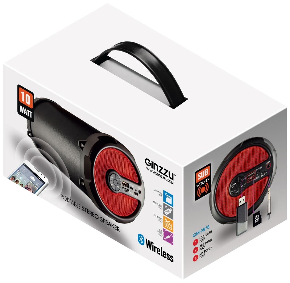 Портативная акустика Ginzzu GM-987B, 10 Вт, черный / красный