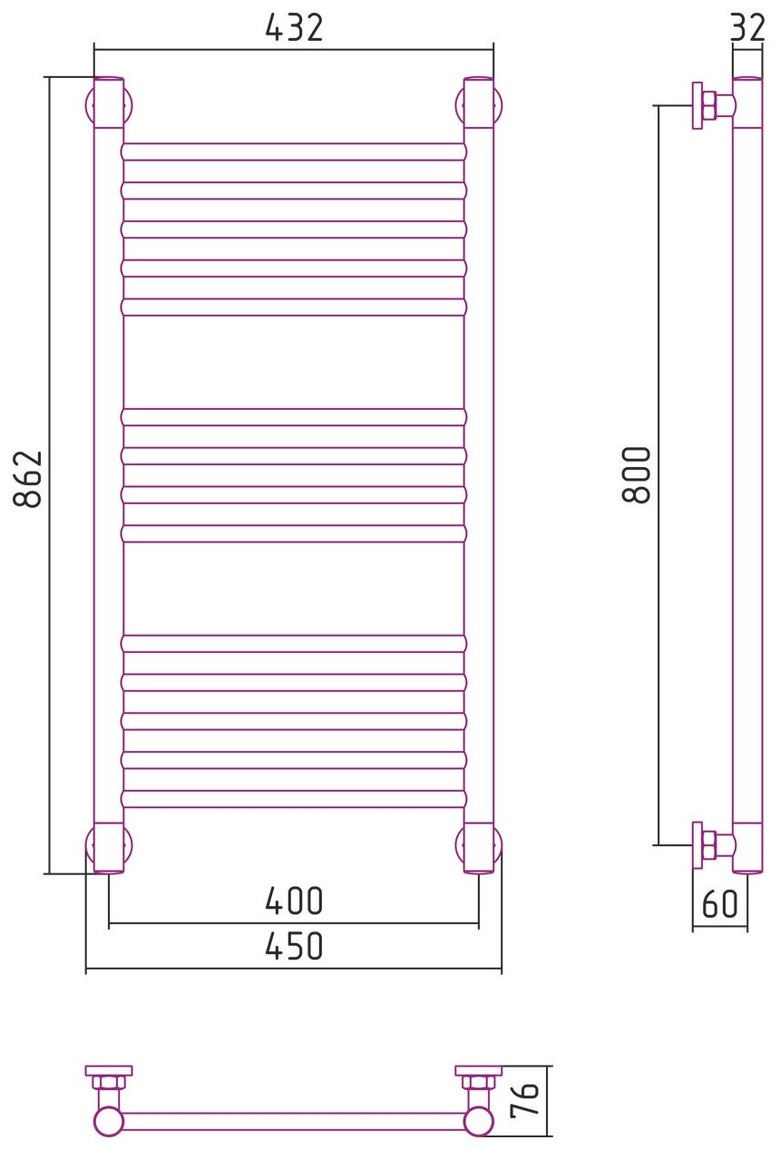 Полотенцесушитель водяной БОГЕМА+ прямая 800х400 Сунержа (00-0220-8040)