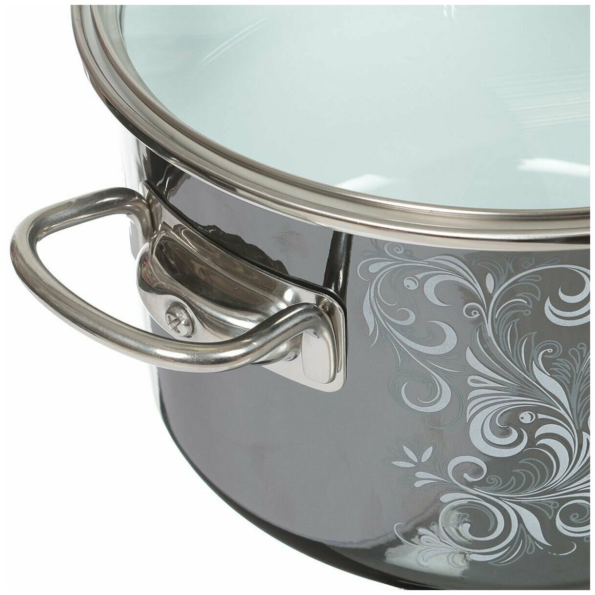 Кастрюля эмалированная сталь, 4 л, с крышкой, крышка стекло, Vitross, Iseberg, 8SD205S, мокрый асфальт, индукция