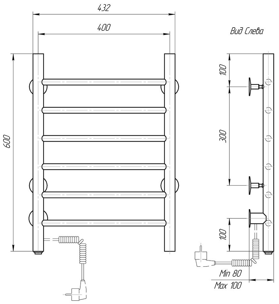 Лучшие цены. полотенцесушитель электрический лесенка, подключение электропровод с вилкой слева, секций 6, мощность 52 Вт, нагрев до 60°C, включение кнопка. Магазины в вашем городе.