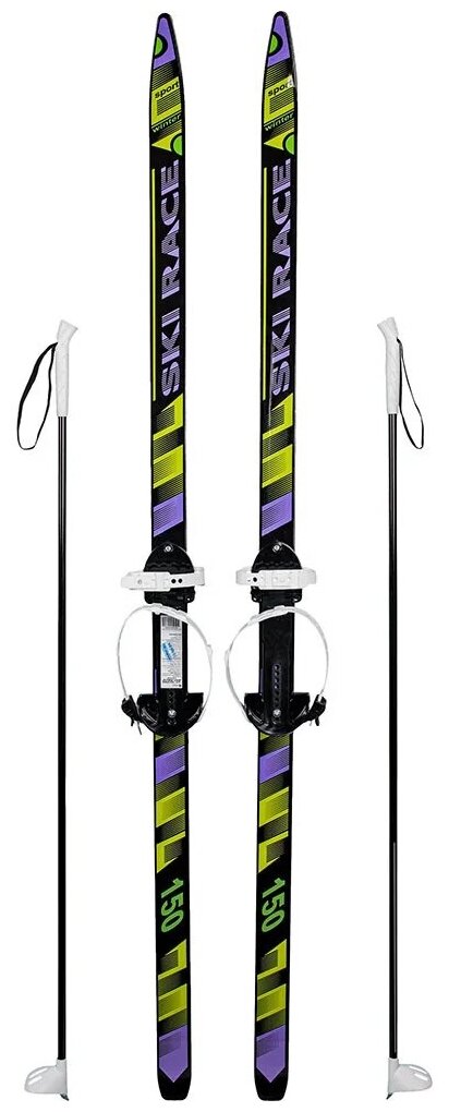 Лыжи подростковые Ski Race с палками стеклопластик, унив.крепление, (150/110)