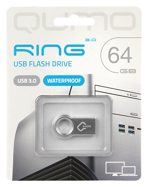 Накопитель QUMO 64GB Ring USB 3.0 цвет корпуса металлик (QM64GUD3-Ring)