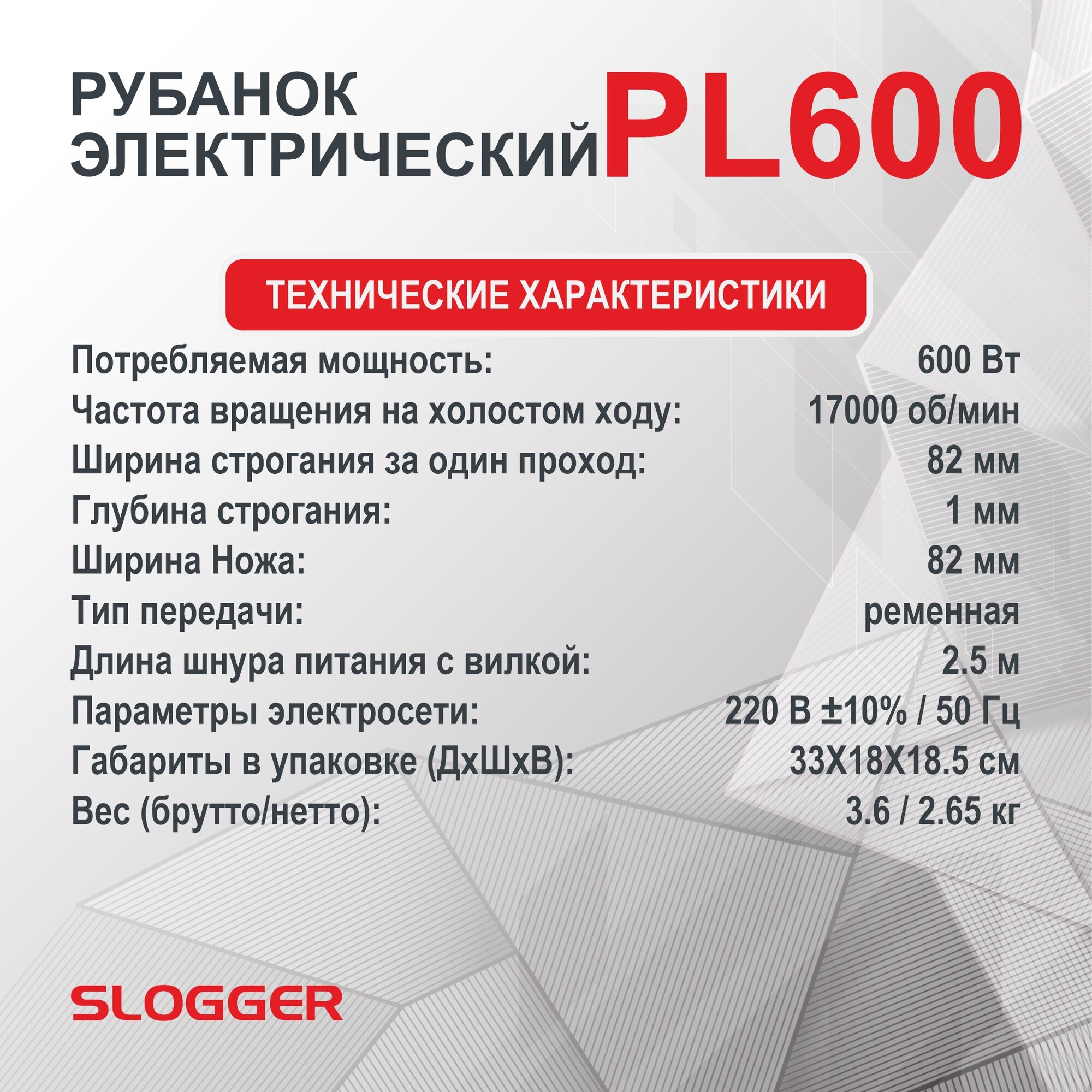 Электрорубанок Рубанок SLOGGER PL600