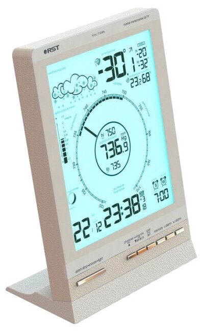 Лучшие цены. Метеостанция RST Q779 - многофункциональное цифровое устройство, которое осуществляет измерения температуры и влажности воздуха, мониторинг атмосферного давления. Метеостанция составляет прогноз погоды на предстоящие сутки. Устройство имеет в своем функционале часы, будильник, календарь. Перечень функций метеостанции: Мягкая голубая подсветка контрастного дисплея Цифровой высокочувствительный барометр с классическим дисплеем в мм. рт. ст. Магазины в вашем городе.