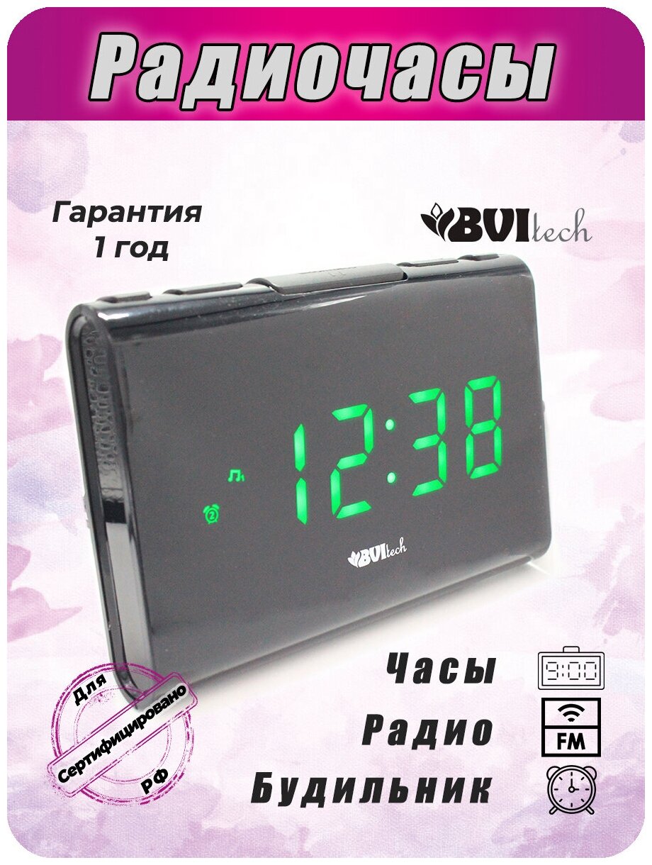 Радиоприемники и настольные часы BV-34GKR BVItech радио-часы сетевые (зеленый/черный)