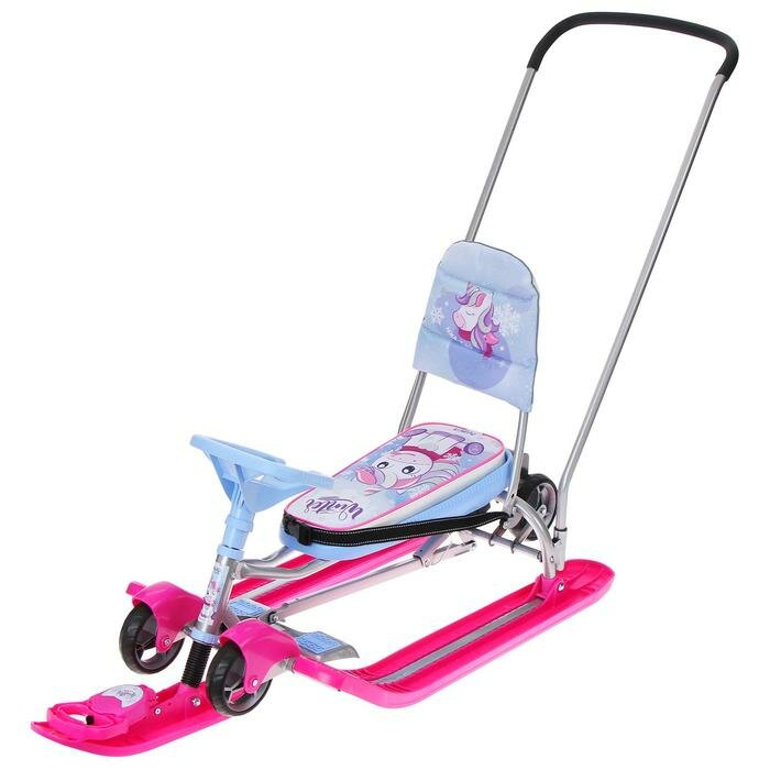 Санки Nika Kids Снегокат с колёсами «Тимка спорт 6 Единорог», ТС6-М/ЕР, с родительской ручкой, со спинкой и ремнём безопасности, цвет розовый/сиреневый/серый