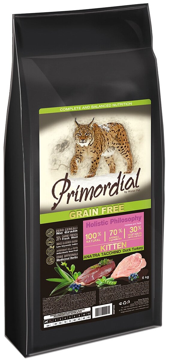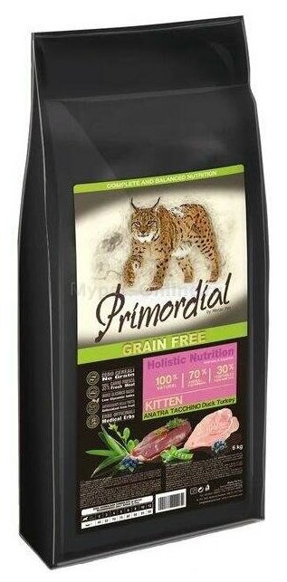 Корм сухой PRIMORDIAL для котят беззерновой утка индейка, 6 кг