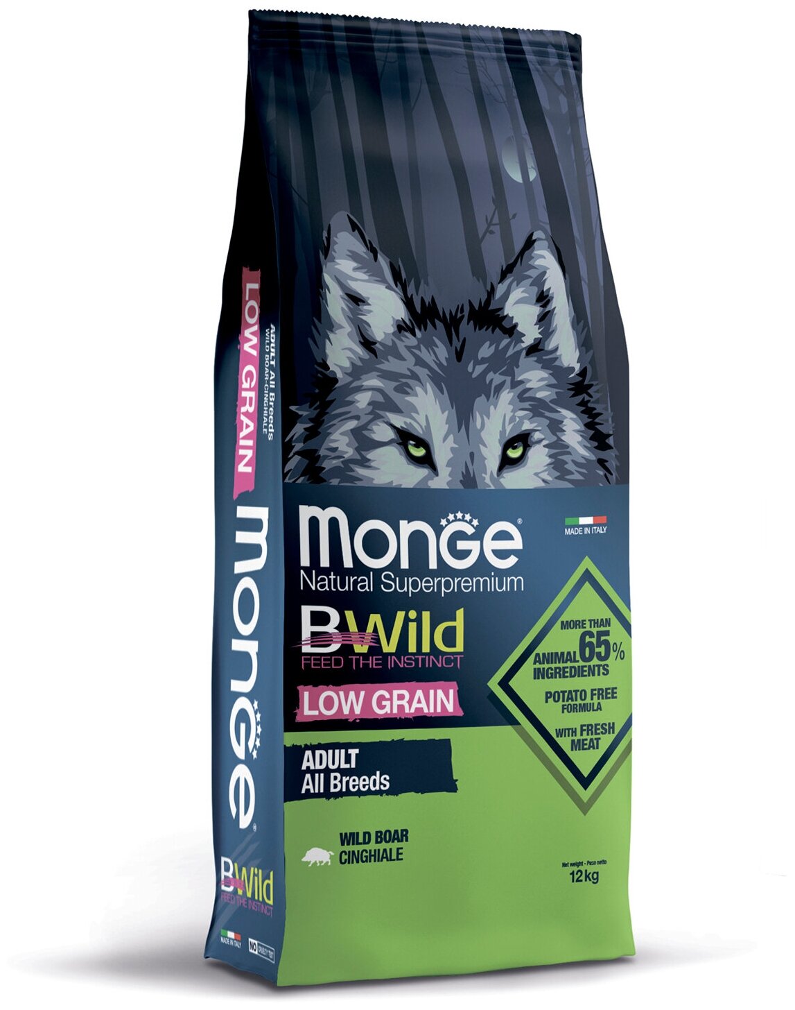 Корм для собак Monge Dog BWild LOW GRAIN низкозерновой корм из мяса дикого кабана для взрослых собак всех пород 12 кг
