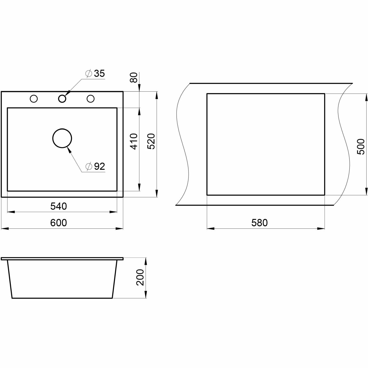 Кухонная мойка Granula 6001 60х52см черный .