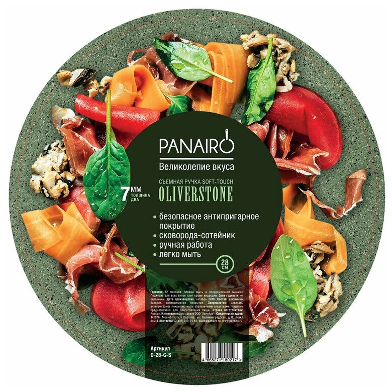 Panairo "OliverStone" Сковорода 28 см Глубокая, Съемная Ручка (o-28-g-s) .