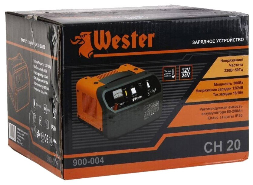 Пуско-зарядное устройство Зарядное устройство Wester CH20 черный / оранжевый