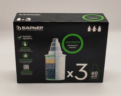 Лучшие цены. Кассета Барьер - 6 Жесткость – 3 шт. - Кассета к фильтру-кувшину Барьер для воды предназначена убрать излишнюю жесткость воды, что способствует минимизации образования накипи, убирает металлический привкус и запах воды. В комплект входят 3 кассеты, что обеспечит на долгое время вас чистой водой. Ресурс каждой кассеты – 350 л. Элементы также удаляют хлор и ионы тяжелых металлов. Смесь ионообменных смол в кассете снижает общую жесткость воды. Магазины в вашем городе.