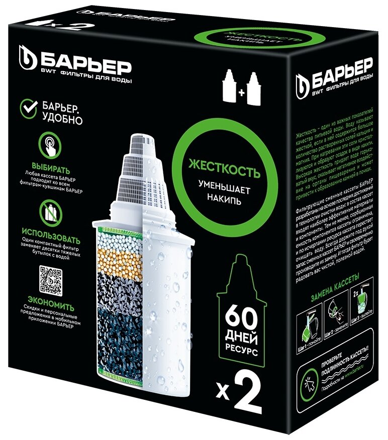 БАРЬЕР Жесткость, комплект кассет для фильтров-кувшинов, защищает от накипи, 2 шт