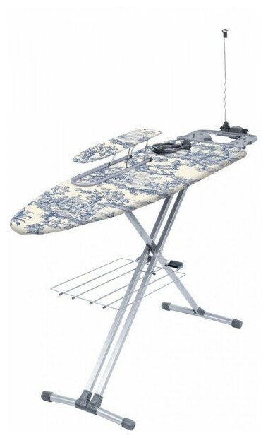 | Функции и возможности | подставка для утюга, регулировка высоты, подрукавник, полка для белья, держатель для вешалок, встроенная розетка, держатель провода |