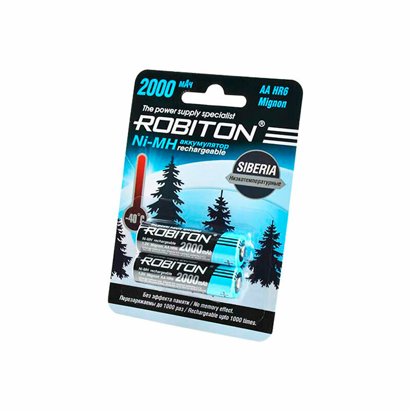 Ni-Mh аккумуляторы ROBITON SIBERIA 2000MHAA-2 BL-2 14875, 1.2В, 2000мАч, размер АА (HR6), металлогидридные, низкотемпературные -40ºС, 2шт в упаковке