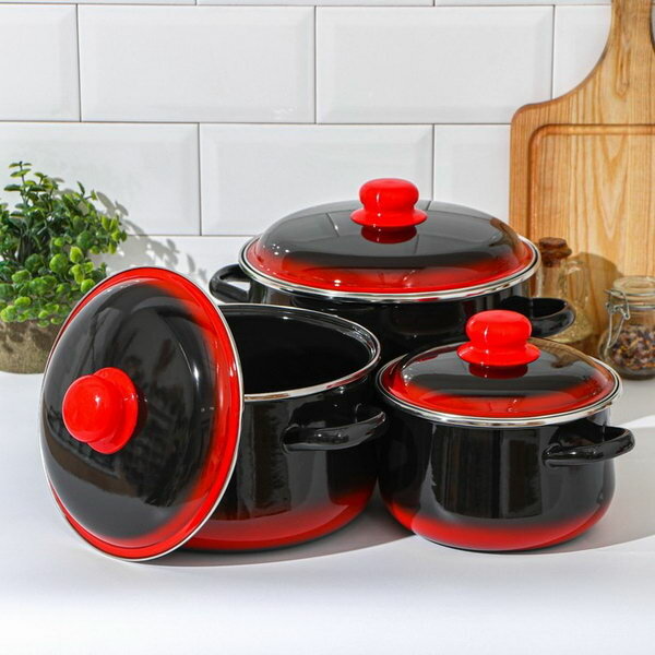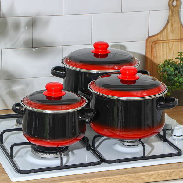 Набор кастрюль «Кармен», 3 предмета: 2 л, 4 л, 5,5 л, цвет чёрно-красный 5 460 ₽ Подробнее
