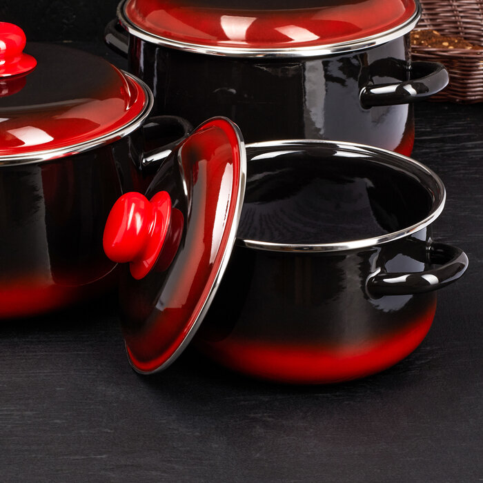 Стальэмаль Набор кастрюль «Кармен», 3 предмета: 2 л, 4 л, 5,5 л, индукция, цвет чёрно-красный 5 548 ₽ Подробнее