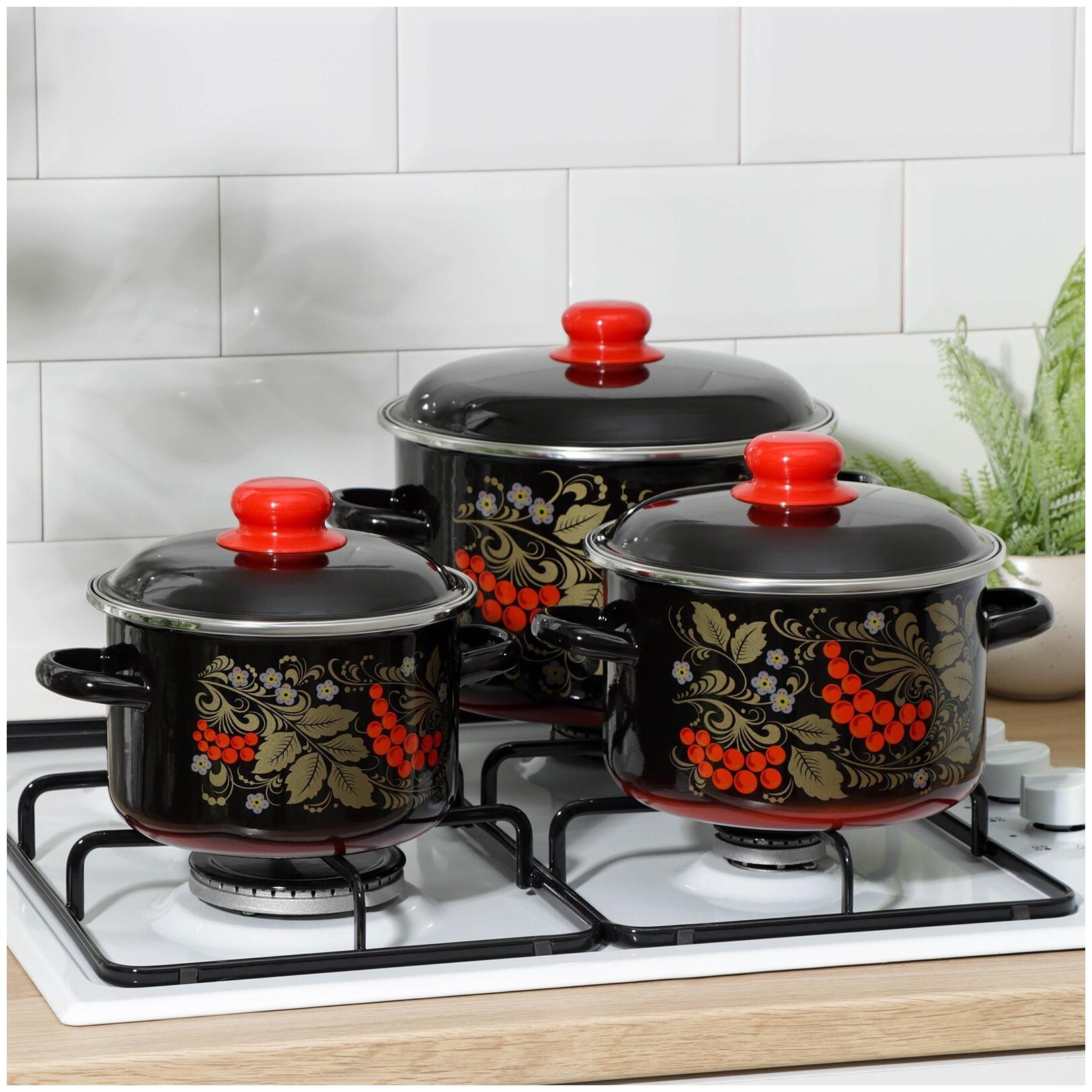 Набор эмалированных кастрюль СтальЭмаль Рябина, 6 предметов, черный