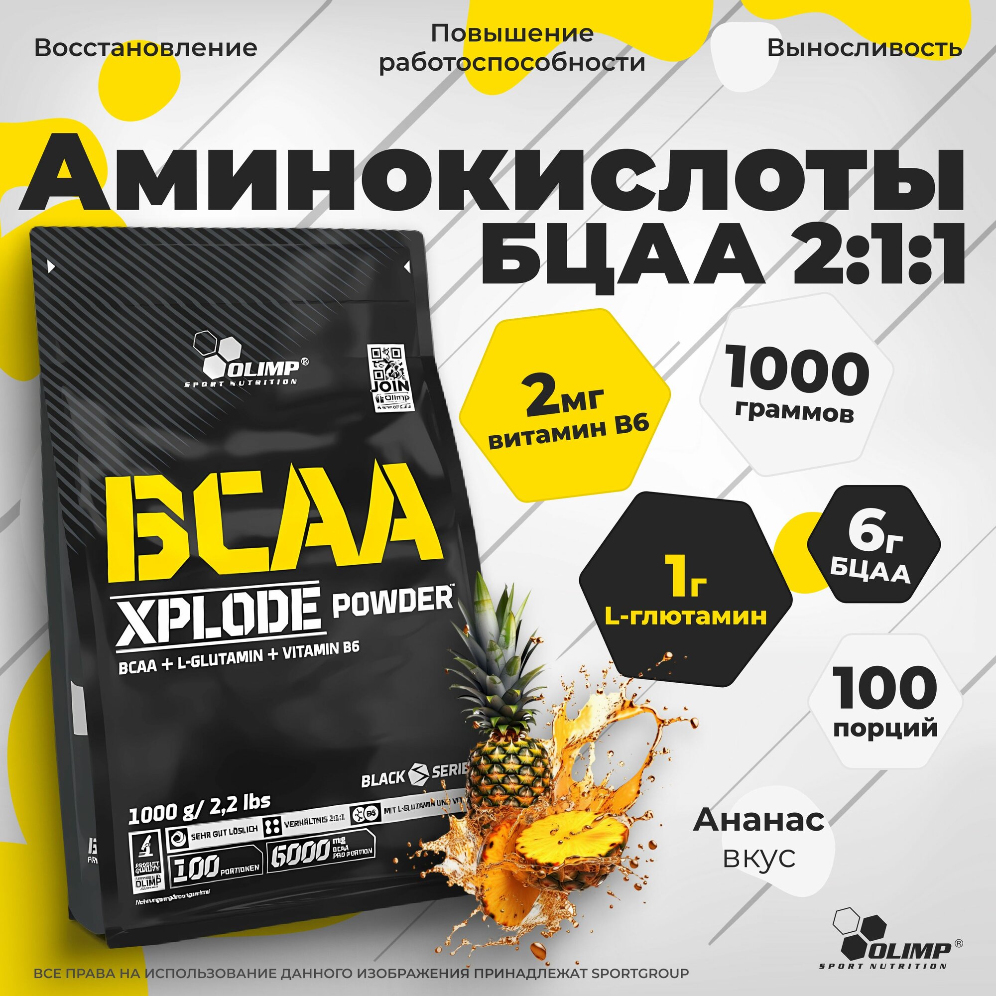 Аминокислоты BCAA (БЦАА), Olimp, BCAA Xplode, 1000 г, Ананас